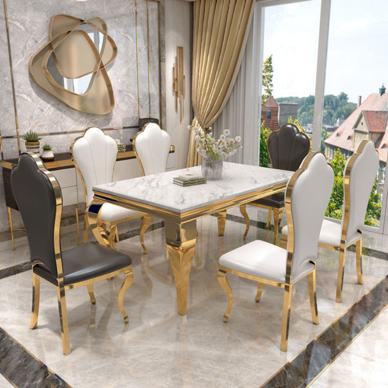 Luxury Stainless Steel Rectangle Marble Dining Table Set Dining Room Chairs