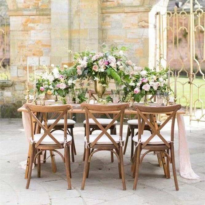 Wooden cross back chair is one of our wedding products. During the past decades, we have accumulated mature experience for the production process of this model.High-grade wood material, professional workers, advanced machinery help us to garantee the chair quality and best price effectively.