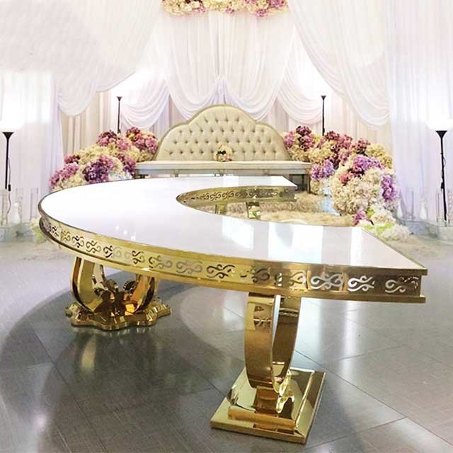 Modern Wedding Half Moon Shape MDF Top Luxury Steel Dining Table