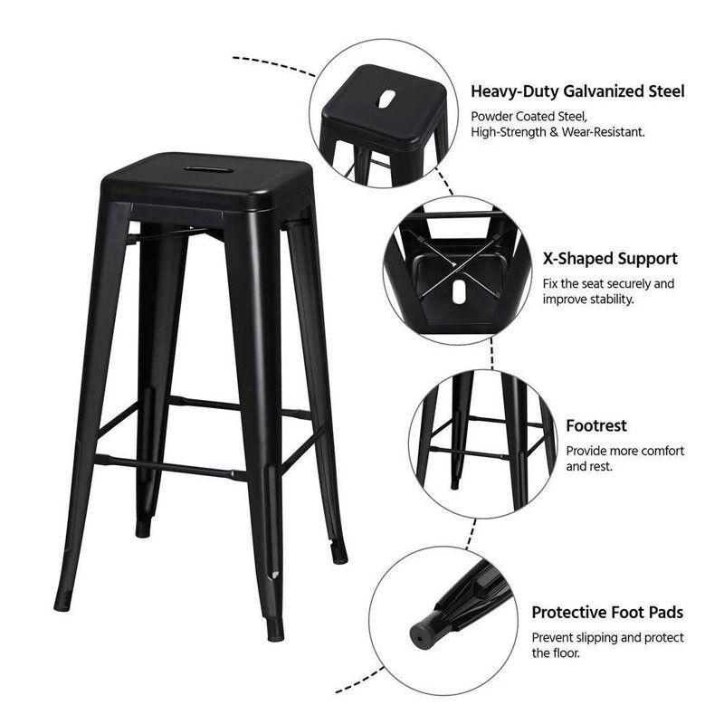 High Foot Bar Chair Iron Industrial Stackable Bar Stool Black Seater
