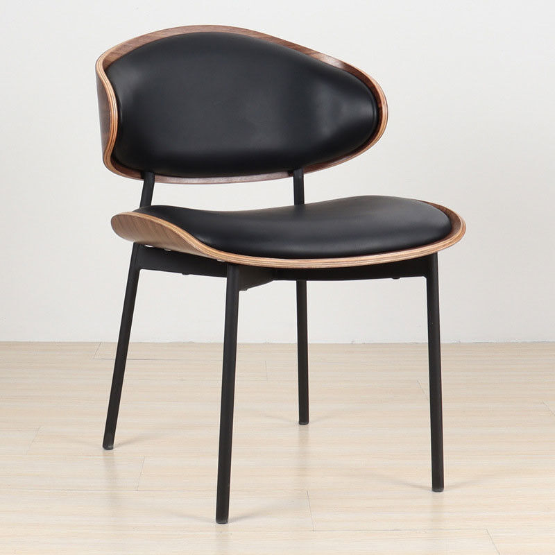Nordic Black Metal Leg Leather Chairs Wood Walnut Bent Wooden Dining Chairs